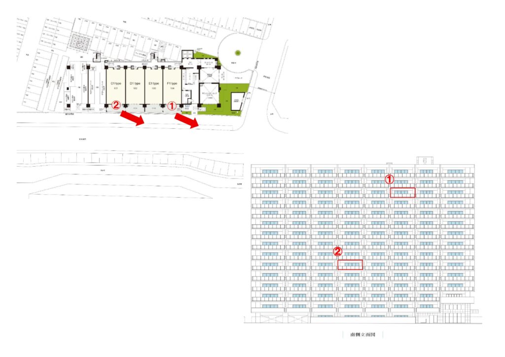 ①13階 ②6階 2箇所のバルコニーよりそれぞれ撮影を行いました!