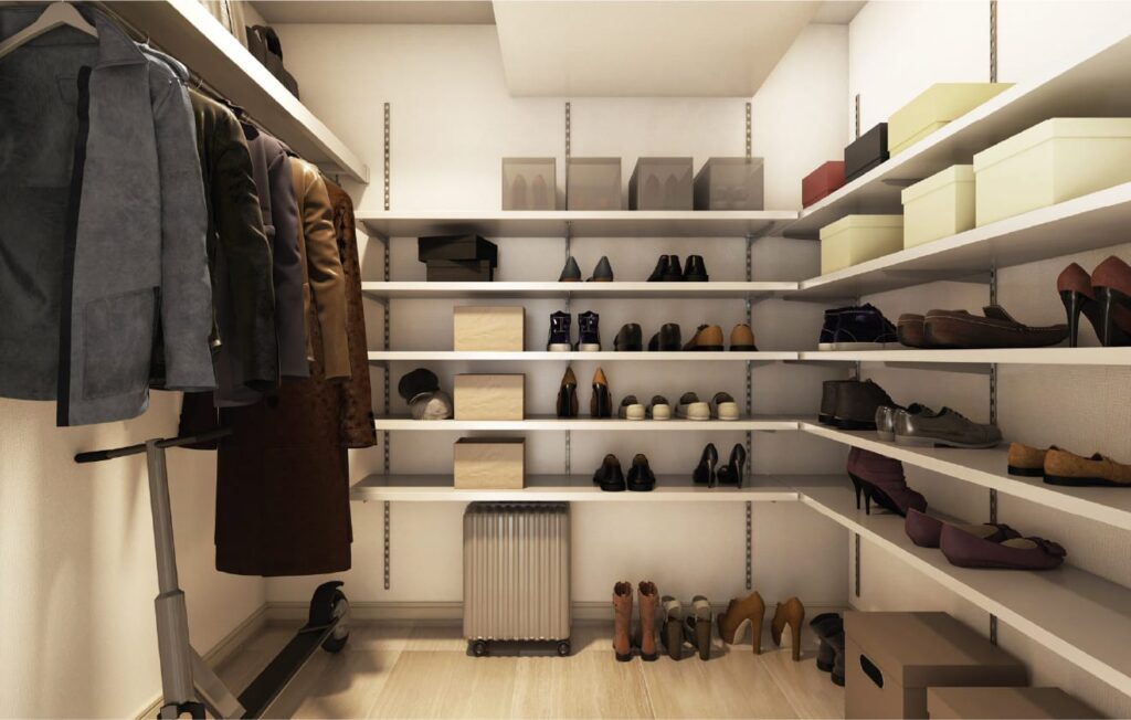 靴やブーツ、キャリーケースなどを効率よく収納できます。