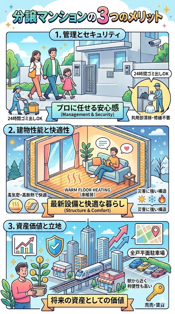 そこで、一戸建てとの違いやマンションのメリットをご案内します。