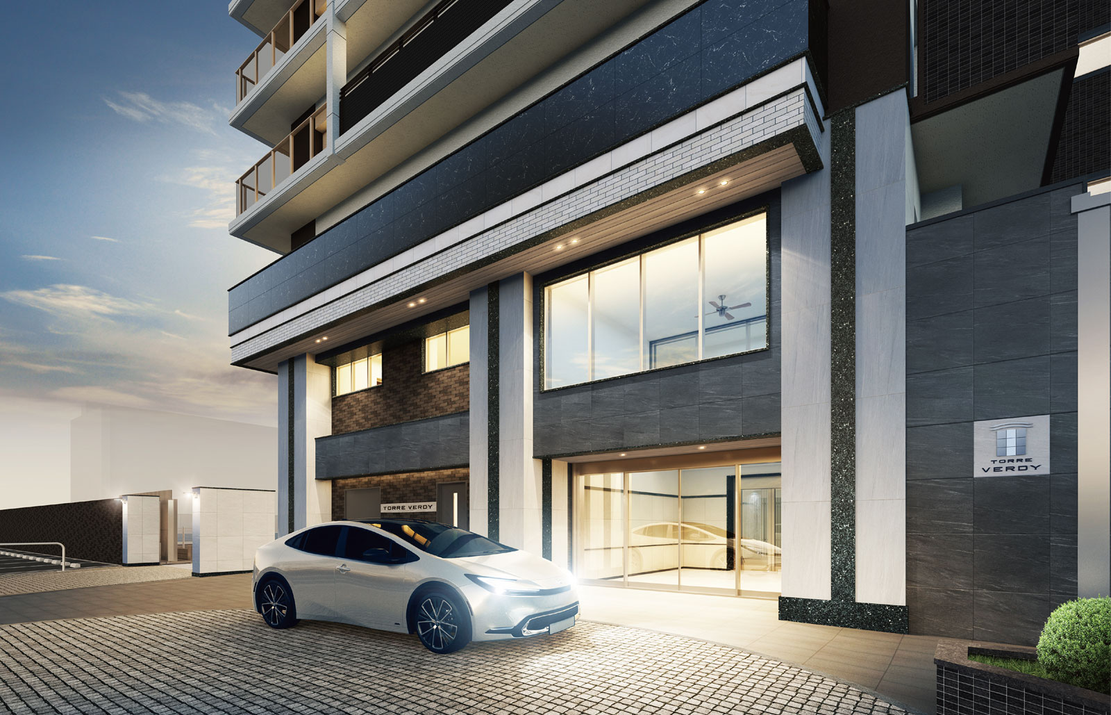 エントランスの前にはホテルテイストの車寄せを採用。暮らしを華やかに演出します。 -