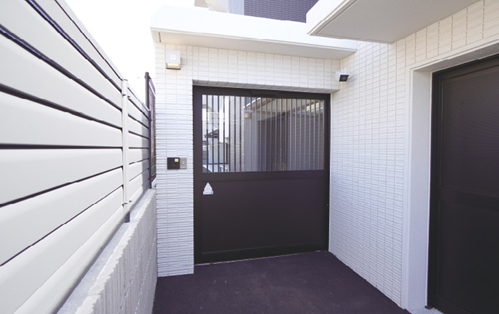歩行者や自転車の出入口にもハンズフリーシステムを導入し、外部からの侵入をガード。
