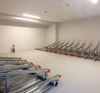 買い物や通勤通学など、日々の暮らしに欠かせない自転車。80台分の駐輪場を確保しました。