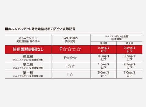室内の空気中の濃度とは異なります。これを水中濃度と呼ぶのは、放出されたホルムアルデヒドを水に吸収させてその量を測るからです。※値はデシケーター法(JISA1460)に準拠。