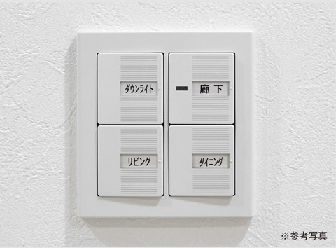 照明スイッチは従来よりも操作パネルの大きいワイド21スイッチを採用。だれでもカンタンに使うことができるユニバーサルデザインのスイッチです。