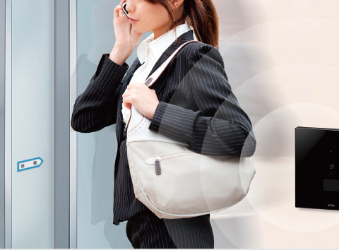オートロックシステムの解錠も、住戸玄関の施錠・解錠も、簡単に操作できます。ポップアップキーをご利用になれば、カバンやポケットに携帯したままでもリーダに近づくと(検知範囲:約2m)、自動的にオートロックドアが解錠。両手に荷物を持っている時など、とても便利です。住戸玄関もグリップのボタンを押すだけ。ノンタッチタグの場合は、キーをリーダやグリップのボタン部にかざして使用。宅配ボックスとも連動し、利便性を高めています。