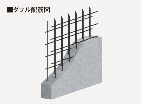 壁などは鉄筋を格子状に組み上げる工法で、主要構造部は鉄筋を二重に組むダブル配筋を標準として施工。シングル配筋よりも高い耐久性を実現しています。
